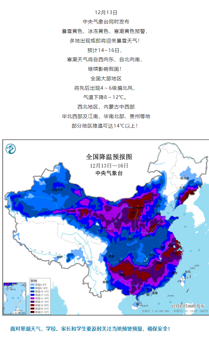 师生家长注意!“霸王级”寒潮来临,加强防范保障安全提示