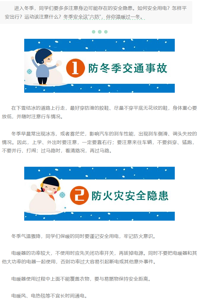 冬季安全“六防”,送给所有学生和家长!