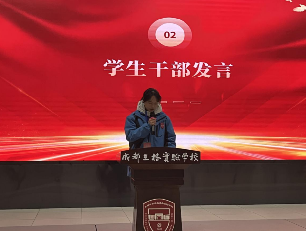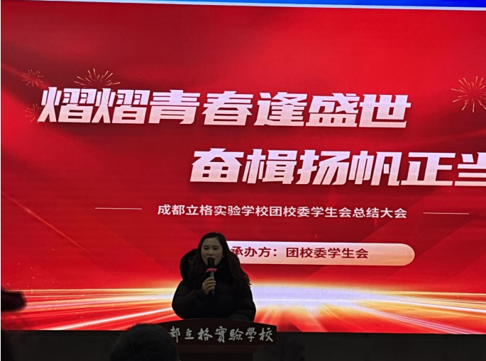 首先成都立格实验学校团校委学生会主席吴沁骁进行本学期工作总结。通过与同学们日常工作的相处中,收获颇丰。从一开始的懵懂无知到现在的得心应手,通过提出问题、解决问题,一边实践一边成长,就是在这样的工作中获得了进步,也获得了友谊。