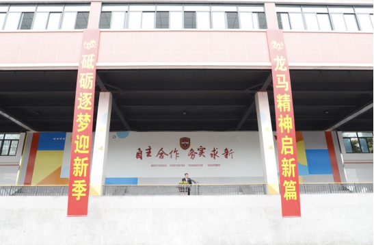 主持人宣布仪式正式开始,教学楼前展示对联——“砥砺逐梦迎新季,龙马精神启新篇”,点燃了全体师生在新学期奋进的热情。新学期,新起点,立格师生带着满腔的热情和坚定的信念,逐梦新季,扬帆起航!