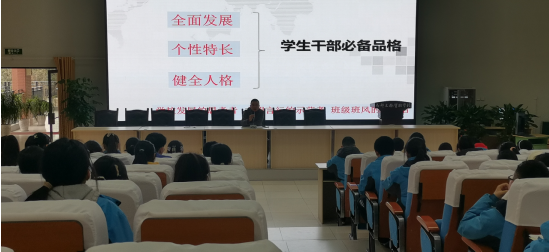 学校德育主任助理、团校委书记王俊老师从学生干部的素质和能力要求、在日常工作中的职责和义务、参与校园自主管理的作用和意义、班级管理的共识和方向等方面对全校学生干部进行了培训,指出了班长工作肩负的重任和提升领导力的重要性。