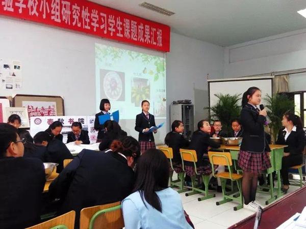 2015年4月14日第九节课,由八年级历史组老师指导的小组研究性课题《了解身边非遗 守望精神家园》汇报活动在我校学术厅进行。