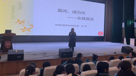 青春期健康教育对于学生的健康成长具有重要的意义。为做好学生青春期健康教育,引导中学部女生正确处理青春期的烦恼,正视青春期心理、生理的正常变化,放下多余的心理负担,全身心投入到学习中去,树立正确的人生观和价值观,在第114个国际妇女节来临之际,我校诚挚邀请到成都市心理骨干教师导师、双流区心理健康教育教研员、国家二级心理咨询师陈丽老师莅临我校做了主题为“追光,成为光”的女生专题讲座,初一和高一年级近千名学生全程参与了此次活动。