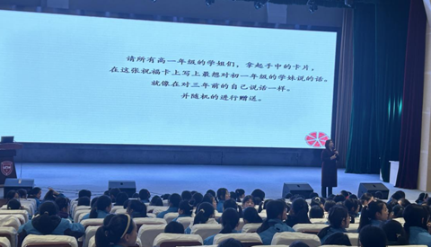 陈丽老师首先邀请高一年级的同学们在卡片上写上最想对初一年级的学妹说的话,并赠送给初一的学妹们。精心设计的破冰之旅迅速拉近了与同学们的距离,并激励同学们分享自己的心声。