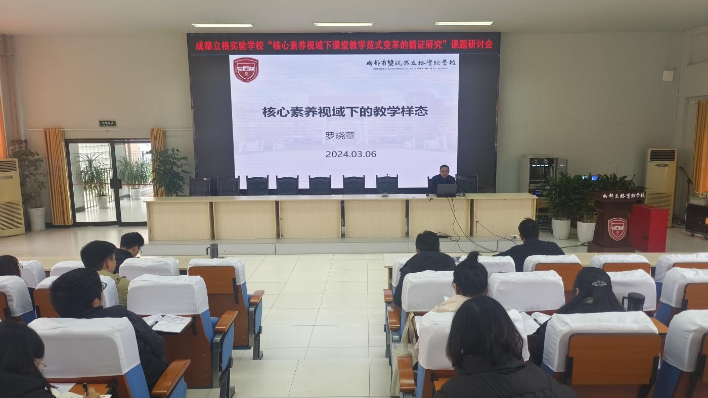 2024年3月6日上午,“核心素养视域下课堂教学范式变革的循证研究”课题研讨会在成都立格实验学校学术厅成功召开在,此次研讨会旨在“双新”背景下,深化教学改革,迭代教学模式,提升教学质量。学校副校长罗晓章,教科室副主任付兵,课题组全体主研教师,罗晓章名师工作室学员参加了此次研讨会。