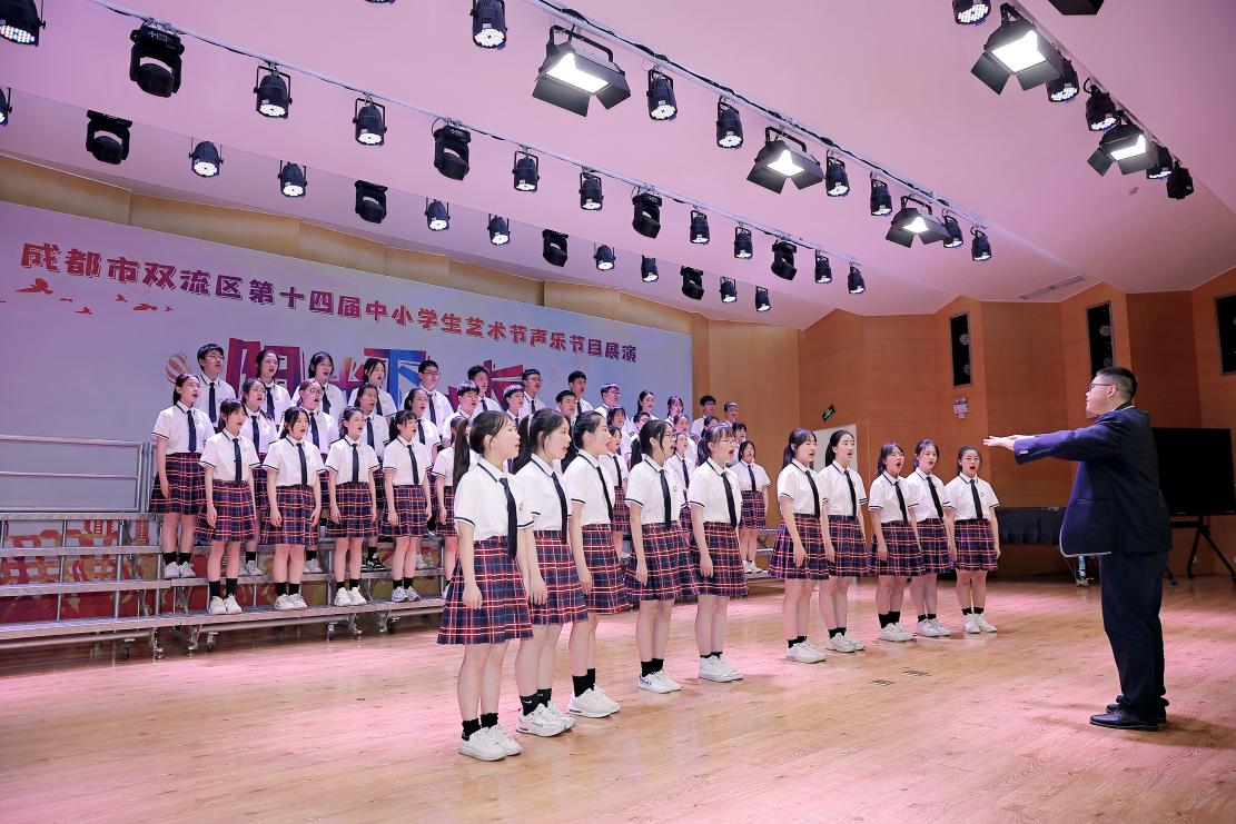2024年3月27-28日,由区教育局主办的“阳光下成长系列活动暨成都市双流区第十四届中小学生艺术节声乐节目展演”在四川省双流艺体中学顺利举行。本次艺术节声乐节目展演汇聚了全区37所小学、21所中学的99支代表队,共计4000余名学生参与其中;分为合唱团合唱展演与班级合唱展演。八年级四班代表我校初中部参加了班级合唱展演的角逐,并以一曲红歌《映山红》、一首红十字会公益歌曲《和你一样》获得中学组一等奖。