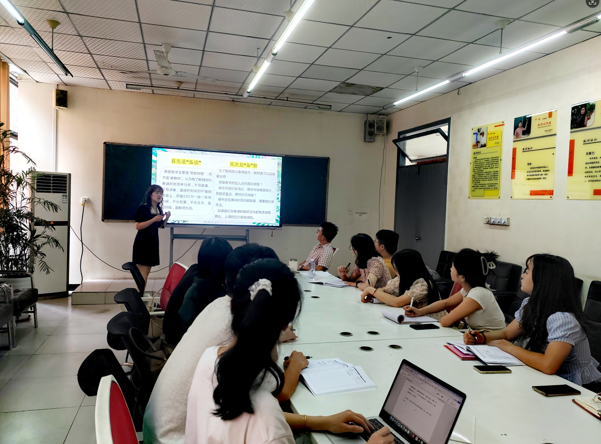 接着,谢娟老师从课前备课、课堂授课、课下事务三个方面对新教师提出要求:第一,课前备课。首先是“备”读,其次是“备”想,再次是“备”写,最后是“备”记。第二,课堂授课。在早自习、上课、午自习和晚辅导中,教师都应准时到岗,时刻关注学生人数、状态、纪律,如有异常及时和班主任、家长沟通。第三,课下事务。1.教师布置的作业需要及时批改,2.能主动承担课题,3 .和家长沟通时做到实事求是、不卑不亢,4.准时出席各种会议,5.公开场合热情礼貌,6.及时请假,并让师傅知晓。