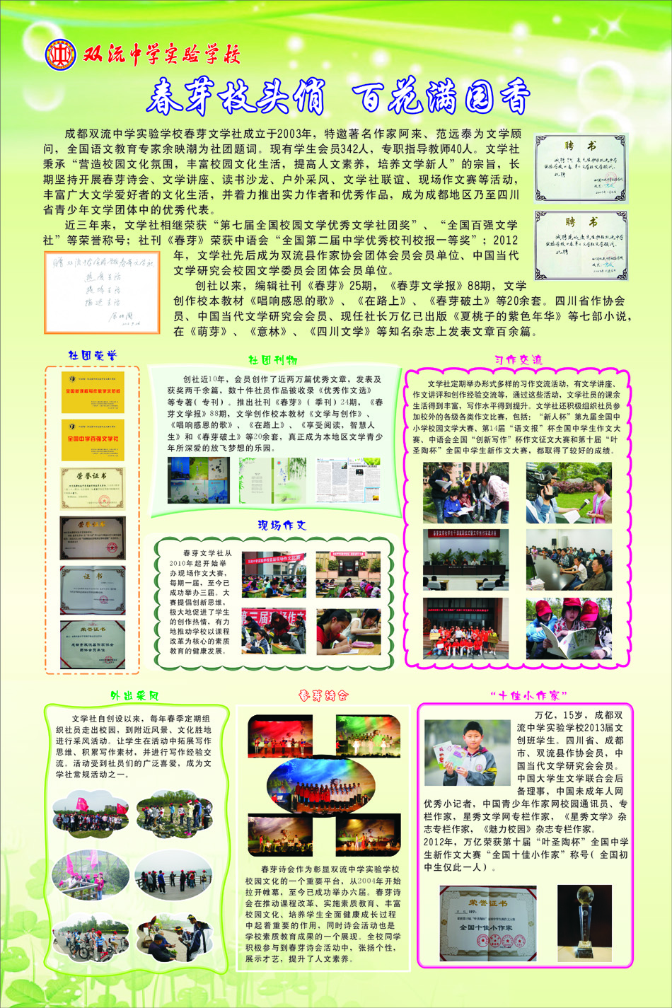 春芽枝头俏,百花满园香 ——四川成都双流中学实验学校春芽文学社简介