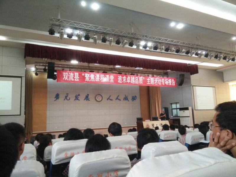 双流县第15次《瞿上讲堂》——“聚焦课程课堂,最求卓越品质”于2015年5月15日在棠湖小学举行,数学组万静、辜曼莎两位教师积极参加,活动由台湾教育专家陈龙安主讲,陈教授的讲授精彩不断,图文并茂,得到到会教师的肯定,掌声不断,受益良多,真心希望双流县能多举办此类活动,提升教师的水平!