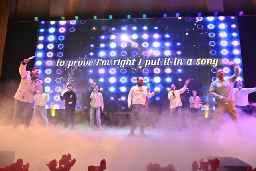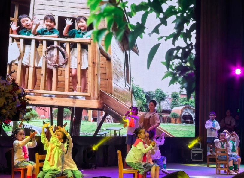 英语歌舞《APT》以其独特的表演风格和欢快的节奏赢得了观众的阵阵掌声;相声《竞选语文课代表》以幽默诙谐的语言,高超的表演技巧,展现了学生们对语文学习的热爱和深刻理解,再加上同学们创编的独属于立格人的逗哏捧哏内容,引得现场观众捧腹大笑;啦啦操《逐梦远航》和舞蹈《爱你》师生同台,以动感的舞姿和活力的表演展示了我校师生积极向上的精神风貌;在钢琴演奏与吉他弹唱的环节,学生们演奏了《浏阳河》《prefect》和《像你这样的朋友》三首曲目,优美的旋律和深情的演唱打动了在场的每一个人;情景剧《三打白骨精》和英语剧《寻梦环游记》则通过精彩的剧情和生动的表演,让观众在欣赏艺术的同时,也感受到了经典的魅力;诗歌朗诵《立格赋》,在杨燕老师和夏栋梁老师的深情领诵下,孩子们富有激情的诵读展现师生对母校的挚爱;乐队表演《奔跑》将现场气氛推向了高潮,动感的音乐和激情的演奏让观众们沉浸其中;情境表演《悦享游戏 畅玩无界》和合唱《Try everything》、《如愿》等节目也各具特色,为晚会增添光彩;舞蹈《象山水月》,演员们的舞姿轻盈灵动让观众仿佛置身桂林山水,感受自然,领略人与自然的和谐美好;晚会还特别邀请了外教老师与学生们一起表演英语歌舞,这一节目不仅展现了学生们的外语水平,也增进了师生之间的交流与友谊,将晚会再一次推向高潮。最后,荣汇幼儿园带来的《超然未来》节目形式多样、节奏欢快,展现了幼儿园师生的自信与活力。