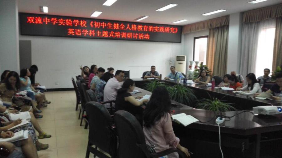5月18日,我校《初中生健全人格教育的实践研究》英语学科课堂教学研讨和主题式培训研讨活动在学术厅和三会议室举行。英语组杨四维老师在学术厅上了一堂课题研究课,通过他的精心设计以及八年级备课组全体老师的出谋划策,使整堂课将健全人格教育渗透于教学过程中。在热身环节,通过对学生熟知的童话的讨论,帮助学生树立正确的人生观——不畏艰险,勇于面对的精神。在阅读环节中,通过对两个主人公和其父亲、继母的两条主线的分析,帮助学生明辨是非。阅读后,通过引导学生对剧中几个角色的性格分析,让学生对主人公的勇敢沉着以及父亲的懦弱、继母的冷酷有了更进一步的了解,有利于学生通过篇章的学习形成正确的爱憎分明的情感态度,整个教学都离不了对学生健全人格的教育。