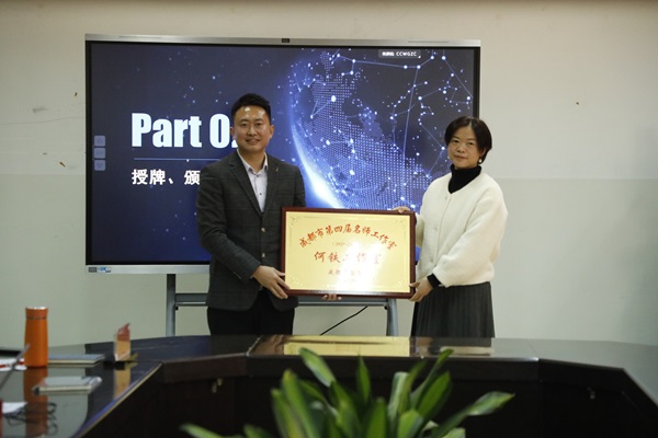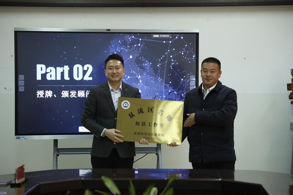 在庄重而热烈的气氛中,双流区教学科学研究院教师发展中心主任罗强老师,以及成都市教育科学研究院教师发展所黄静梅所长,共同为何铁老师颁授了“双流区名师工作室”与“成都市名师工作室”两块沉甸甸的牌匾。这不仅是对何铁老师卓越教育教学能力的权威认可,更是对工作室未来发展寄予的殷切期望与鼎力支持。