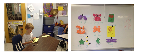 7月29日至8月1日,我和曹旸老师在CFS给10名5至9岁的学生上了4个下午的中文课。考虑到小学生的身心特点,结合初中教学的经验,我们加大了活动教学内容,收效很好。