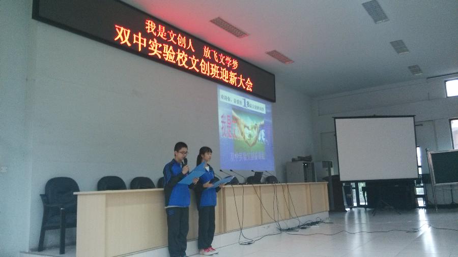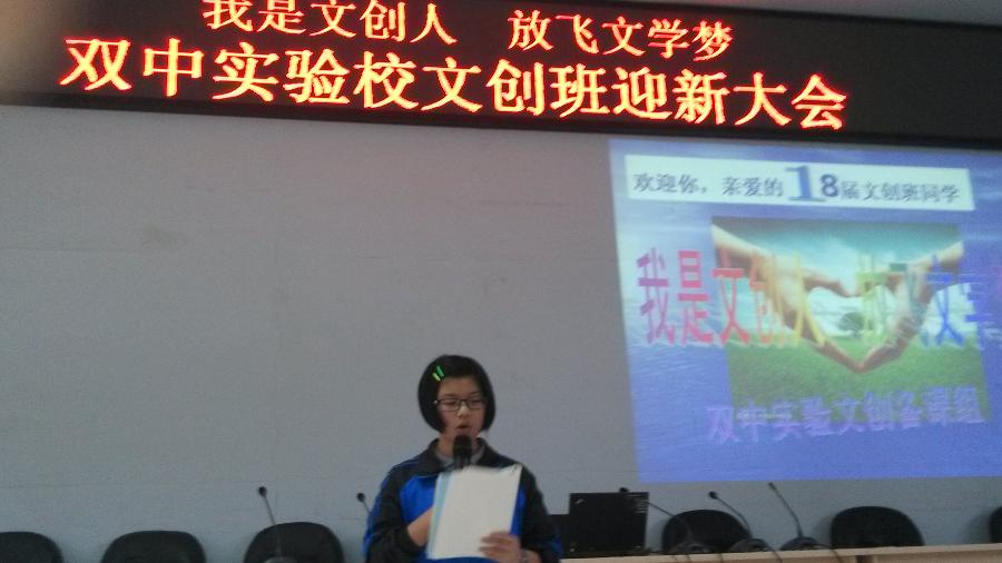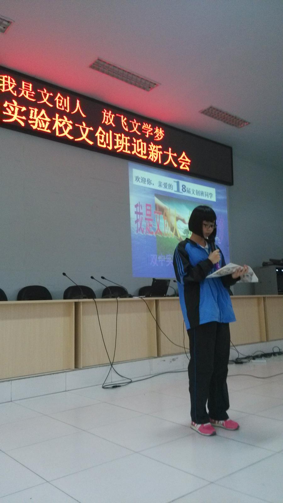 2015年9月17日下午,我校文创班“我是文创人,放飞文学梦”迎新大会在学术厅举行。七、八年级文创班所有同学齐聚一堂,偌大的学术厅座无虚席。文创班班主任、文创特色班走出的中国新一代创作新星、省青少年作协副主席——万亿、省作协副秘书长等出席了此次活动。