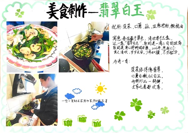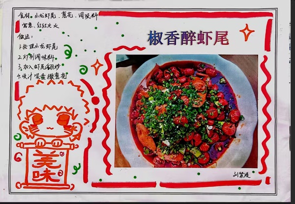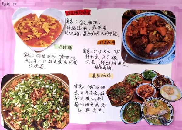 作业内容丰富且紧扣学科特点:一是“灯笼制作与诗文创作”,让学生在灯笼上书写诗词对联;二是“年夜饭诗话”,为家中菜肴创作小诗;三是“春联书写与赏析”,鼓励学生书写并赏析春联。这些作业将语文学习与生活实践深度融合,让学生在动手劳作中感悟文字温度,在烟火气息里品味诗词韵味,真正实现了“生活即教育”。