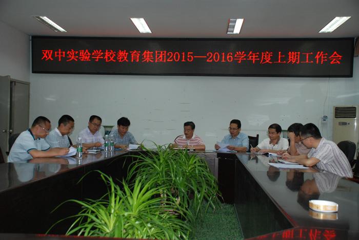9月14日,双中实验学校教育集团2015—2016学年度上期工作会在双中实验学校第三会议室举行,双中实验学校、九江初中、彭镇初中、协和初中、黄龙溪学校的校长、副校长和教育集团管委会各部门干部参加了会议,双中实验学校张润林副校长主持会议。会议主要内容有:1、由于部分成员校校长的调整,所以,重温了集团《章程》。2、进一步完善集团组织机构。3、部署了本学期集团工作计划和主要活动安排。4、安排布置2015年度教育集团迎检考核相关工作。