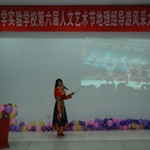 2013年11月28日,为更好的丰富校园文化生活,培养学生健全人格,地理组以学校人文艺术节开展为契机,结合八年级中国地理知识,在多功能厅顺利举行第六届人文艺术节导游风采大赛决赛。参赛对象为我校八年级学生,经过两个月的初赛复赛,层层选拔,最终9位选手脱颖而出进入决赛。张校长、周主任、刘主任出席了本次活动。决赛环节分为自我介绍、景点讲解、现场抽题、评委提问、才艺展示五个环节,在决赛中各位选手表现出了最佳状态,赛出了最佳水平,其中让人印象最深刻的是八年级十七班苏培玉同学,讲解的景点是她家乡甘孜州丹巴县梭坡古碉群的自然风光与人文特色,赢得了在场老师同学的热烈掌声。在才艺展示中,形式多种多样如配乐诗朗诵、民族特色舞蹈、魔术、书法、歌曲等,充分展现出我校学生丰富的课余生活。
