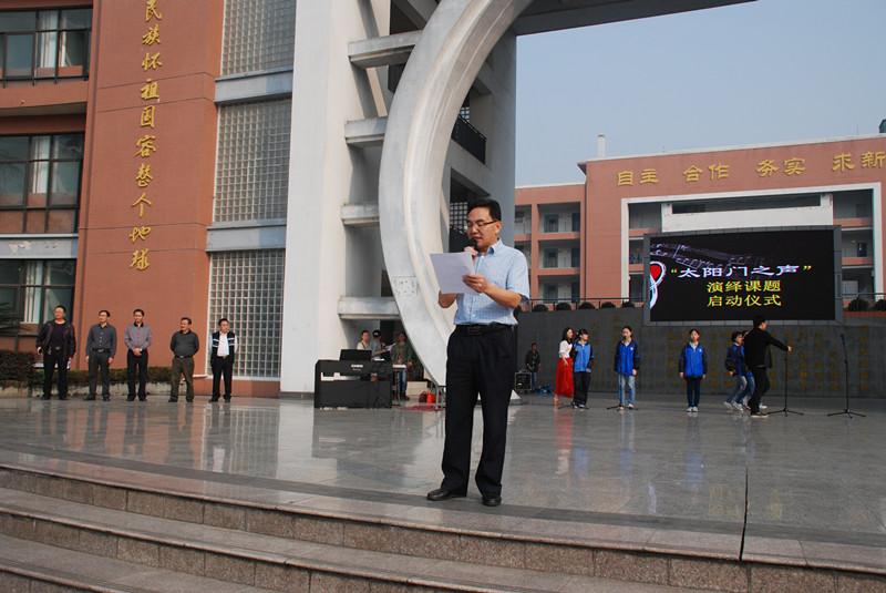 10月13日,“太阳门之声”演艺课题启动仪式在我校前操场太阳门前隆重举行!学校各部门领导、省音乐特级教师陈双(县教研员)出席了仪式。