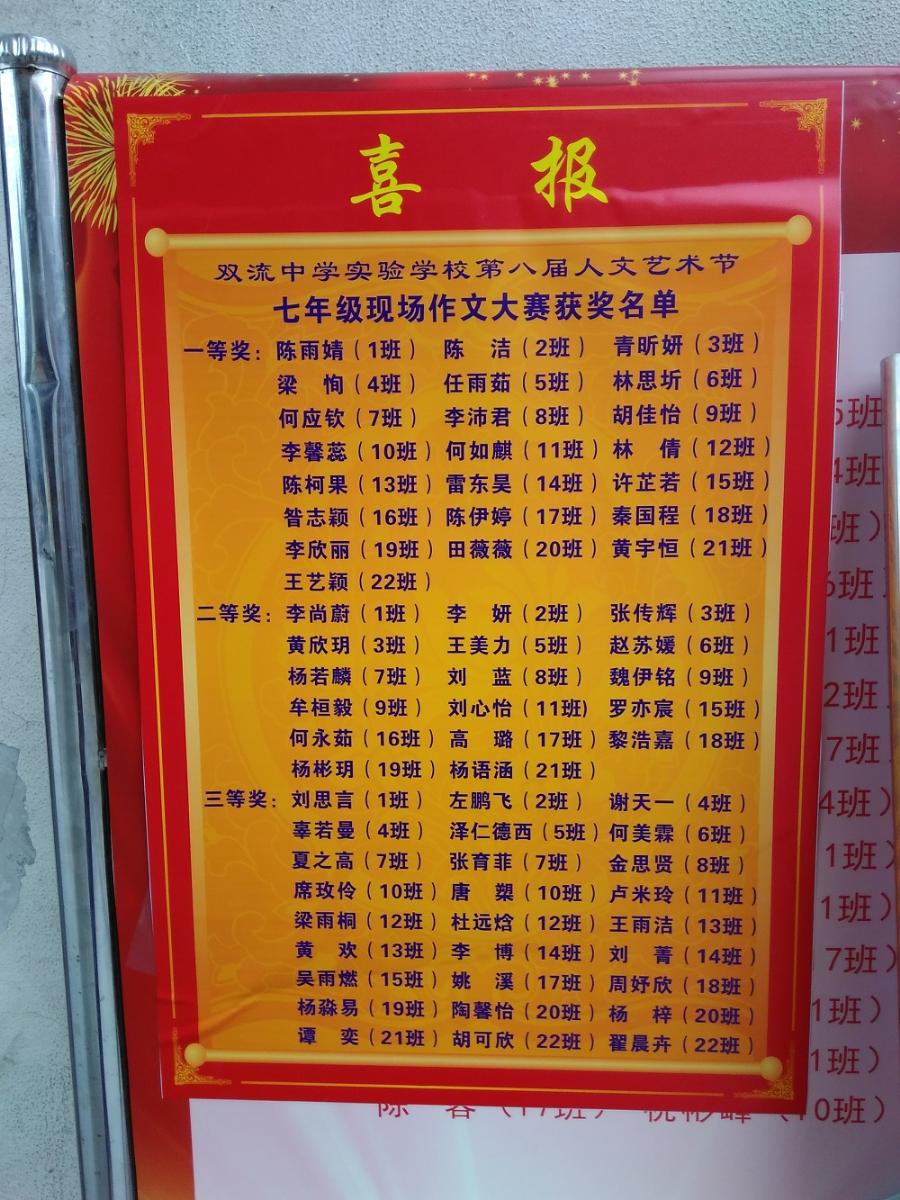10月29日,“第八届人文艺术节” (语文类)现场作文大赛在学校图书馆顶楼如期举行,来自七年级各个班级的六十余位同学经过一节课的现场创作,经过评审老师的筛选,共评选出一等奖22人、二等奖17名、三等奖27名。(语文组 田海明)