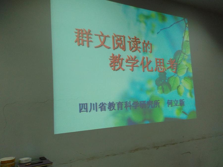 何老师首先向在座的老师系统地介绍了群文阅读在全省中小学的发展情况,肯定了我校在其中起到作用。接着何老师多角度,多方面地系统介绍了群文阅读的含义、作用与具体的实施方法。最后,何老师鼓励每一位老师均要有群文阅读的意识,自觉地投入到群文阅读建设中来。(语文组 田海明)