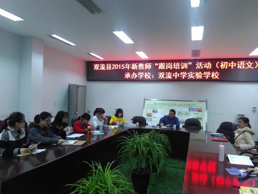 12月3日上午,双流县2015年初中语文新教师在研培中心办公室副主任彭本常的带领下来到我校,三位新老师给我校语文教研组老师献上了三堂精彩的展示课。