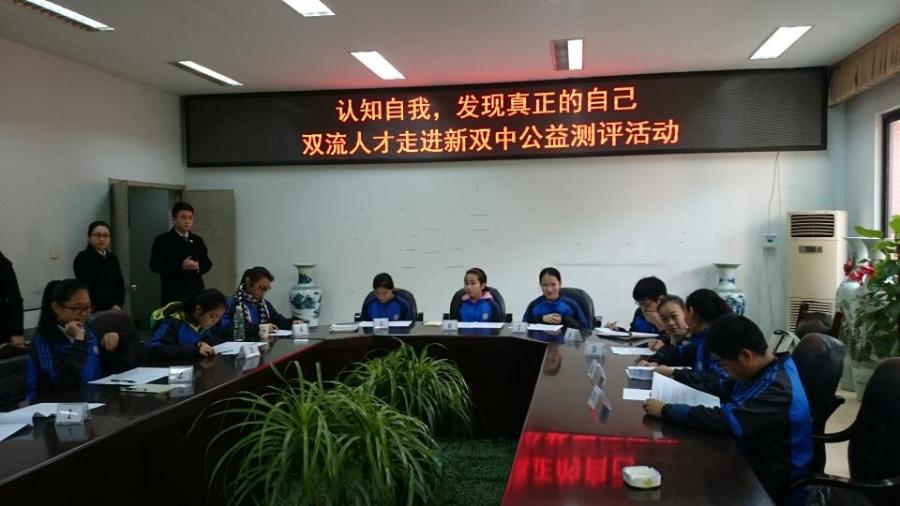 2015年12月2日(星期三)中午,我校思品组小组研究性学习课题组活动在三会议室举行。围绕研究课题双流中学实验学校学生自我认识现状调查,为了帮助课题组成员加强自我认识,本次活动邀请了成都市天府新区双流人才服务有限公司(简称双流人才)的专业人员为课题组成员开展测评活动。