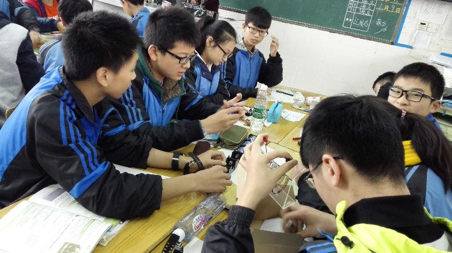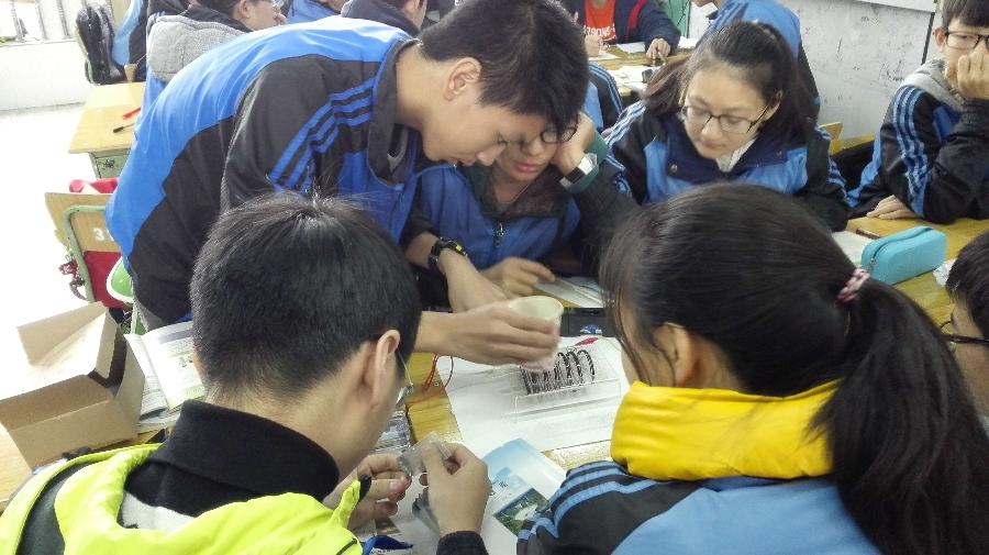 课堂上,段绪德老师充分利用了我校主研的市级课题《自主合作探究式课堂教学模式构建研究》的研究成果进行课堂教学设计。他首先自制了两艘小船,当小船静止时,这两艘小船总是指示南北方向。拆开小船,发现其中一只小船里是一根条形磁体,另一只小船里是一个通电螺线管。从而引出了今天的新课《电流的磁场》。进而引导学生展开活动,重点探究电流周围存在磁场的特点,得出了最后的结论。整个课堂上,段绪德老师紧密围绕本节课的教学目标,并不时给予学生激励性的语言,贯彻了我校在课堂上健全学生人格的目标。