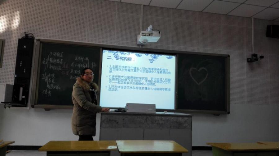 2015年12月17日(星期四)上午10:10,我校“初中生健全人格教育与语文教学结合的实践研究”主题研讨暨阶段成果汇报活动在多媒体教室开展。全组语文老师都按时参加,活动由何向老师主持,高校长、张校长、王主任到场指导。