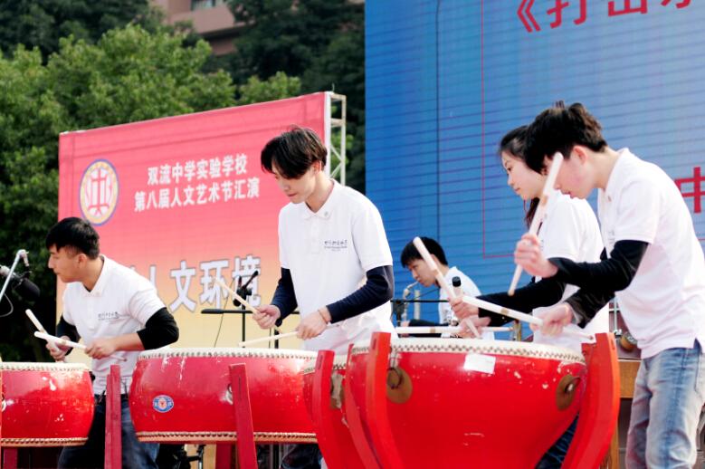 四川打击乐团以一首《打击乐欢乐秀》拉开演出序幕,点燃了全场气氛,熟练的打击技巧、自信的表情、震撼的鼓点都让现场的观众热血沸腾。伴随着欢歌笑语,满载着收获的喜悦, 16个节目轮翻登场,历时两小时,节目精彩纷呈:舞蹈《现代拉丁舞》热情奔放,活力四射;相声《满腹经纶》令人捧腹大笑;由家长和学生共同演唱的歌曲《相信自己》美妙动听,其乐融融;戏剧表演《白蛇传》以另类的表演和台词令观众笑声不断,语言节目《话要怎么说》以情景再现的表现形式生动直观呈现了“良言一句三冬暖,恶语伤人六月寒”。七年级英语组教师表演的歌曲《my love》,描绘了一幅新双中人相亲相爱的温馨画面;语文组教师表演的诗朗诵《组诗——希望、未来、祖国》,拨动了全场师生的心弦。七八年级部分学生共同表演的爵士拉丁舞蹈《Angalia》将整场演出推向高潮,为本次汇演画上了完满的句号。