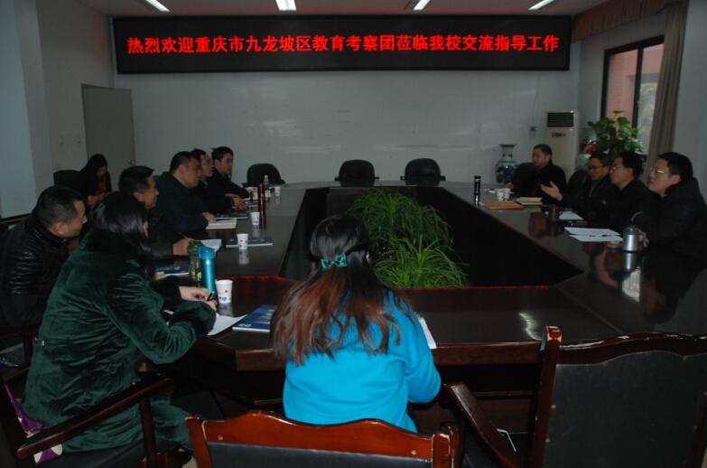 2016年1月15日上午,重庆市九龙坡区教育考察团在我县教育局成教科周向海科长的带领下来我校进行参观考察,张润林副校长、王伟副校长以及行政办刘尧树主任热情接待了考察团一行。
