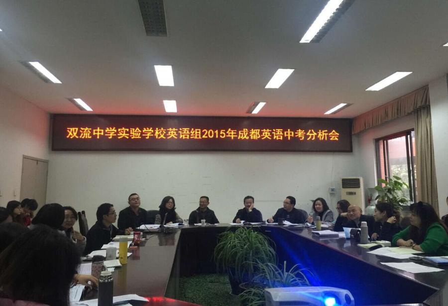 2016年3月8日上午,2016届英语备课组在第三会议室召开中考分析会议,高校长、张校长、杨主任,双流县初中英语教研员程德金老师和全体英语组老师参加了会议。会议由英语组教研组长李征老师主持。会上,李征老师首先从整体上分析了去年的中考形势,提出如今中考侧重完整语境下的考查,而不考纯粹的语法知识。A卷考查基本知识,无偏难怪题,B卷则较高体现了新课标的要求,重能力立意的考查。随后,2016届备课组各位老师分别对听力填表、完形填空作、完成对话、短文填空、六选五排序、阅读填表、书面表达作了详尽的分析。