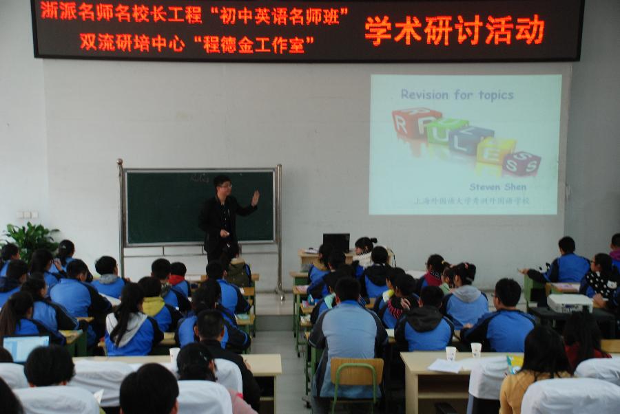 2016年3月24日,浙派名师名校长工程“初中英语名师班”与双流研培中心“程德金工作室”学术研讨活动在我校开展,活动主题是“英语学科核心素养课堂实践研讨”,全体英语组老师参与了活动。