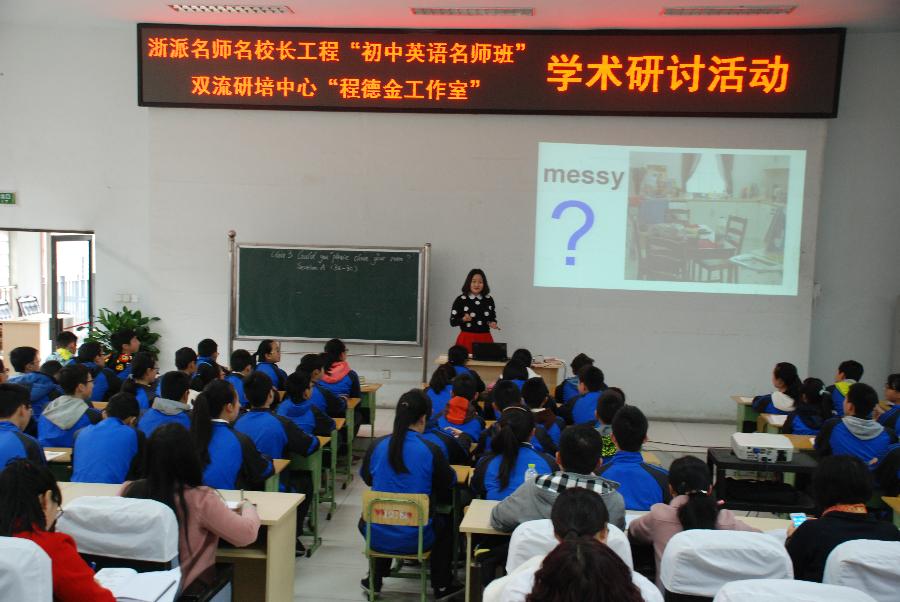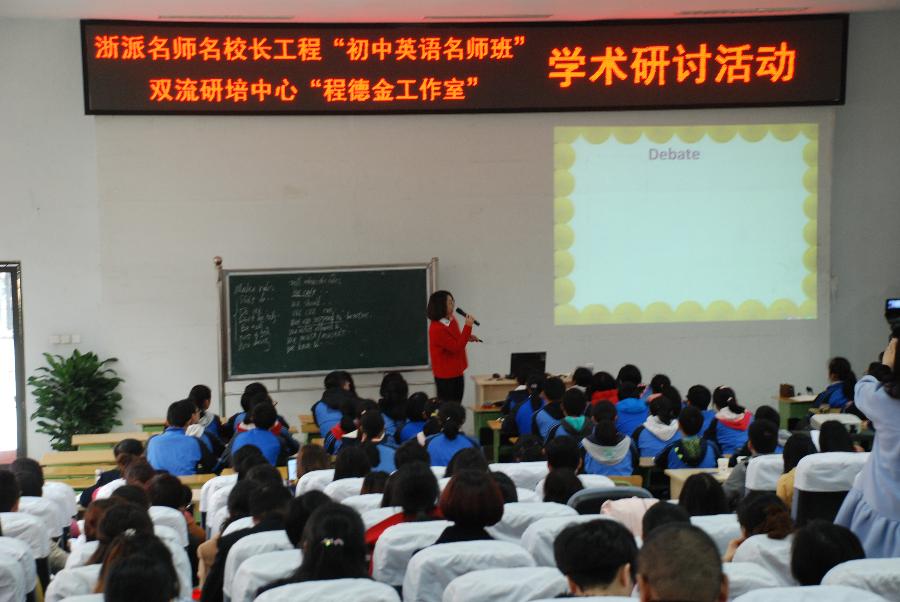 2016年3月24日,浙派名师名校长工程“初中英语名师班”与双流研培中心“程德金工作室”学术研讨活动在我校开展,活动主题是“英语学科核心素养课堂实践研讨”,全体英语组老师参与了活动。