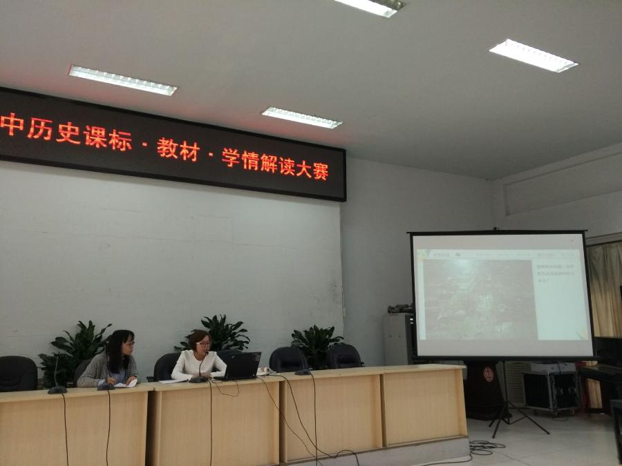 本次大赛采取提前公布解读任务包,现场抽签进行解读的方式进行。全区20多所学校参加了本次大赛,参赛人数和比赛水平均超过往届。上午九点,研培中心匡主任宣布比赛正式开始,我校七年级备课组被幸运抽中,李然和张耀辉老师对《统一多民族国家的巩固和发展》进行了解读。两位老师为了这次比赛,提前几周就进行了精心的准备,常常熬夜到凌晨。在比赛中,向全区历史教师展示了精美的课件、严密的教学逻辑、创新的教学理念,特别在课例展示环节方面,展示了两位教师深厚的教学功底,以明清两代统治者的居所——紫禁城为教学内容的串联点,文学化的教学语言把纷繁复杂的历史进行了串联,提升了学生对知识的认知。