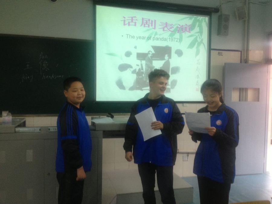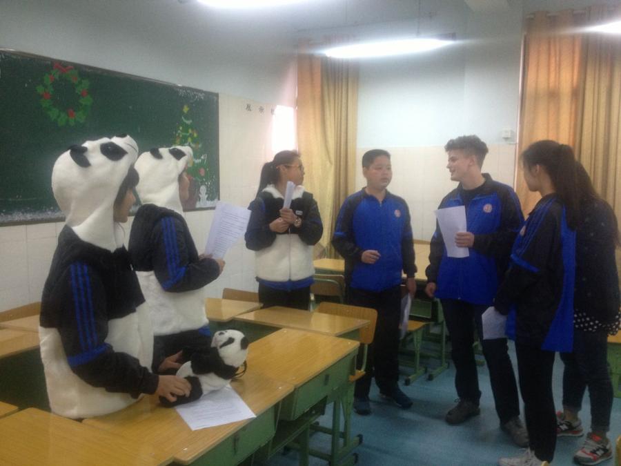 本课最精彩的内容是由Eidde和八年级十七班学生共同进行的情景剧表演——《熊猫的故事》。该故事以1972年中美建交时,中国政府送给美国政府和人民的两只熊猫为线索展开。同学们的表演精彩纷呈、入木三分,为本节课落下了圆满的序幕。(地理组 丁翔)