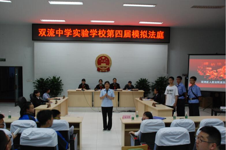 本次模拟法庭由双流区人民法院和双流中学实验学校联合主办,是思品教研组教研组承办的特色活动之一,至今已经开展四届。