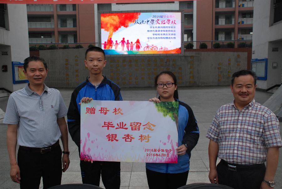 典礼上,学生代表冯易代表全体毕业生感谢老师辛勤的付出,帮助与陪伴,道出了对母校的深深眷恋。教师代表梁卓恒字字嘱托、句句叮咛,让毕业生感受到了恩师的关爱。高志文校长作了会上讲话,他肯定了同学们三年来在双中实验学校的成长和收获,对即将走进中考考场的同学们给予了美好的祝福,同时对同学们未来的学习和生活提出殷切的期望,希望同学们做一个奋发有为的人,做一个会理性独立思考的人,做一个意志坚定的人,做一个热爱生活、敬业乐群的人,做一个立志终身学习、不断实践创新的人,并衷心希望母校能成为同学们共同的永远的精神家园。会上,毕业生代表向母校赠送了一棵感恩树,种下他们对母校的深深的眷恋留恋和对未来的美好憧憬。最后全体初三学子与学校校长、班主任、任课教师合影留念,叙师恩,话别离,整个毕业典礼沉浸在温馨、温暖、感动的氛围里,将毕业典礼推向了高潮。