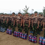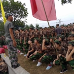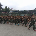 2016年8月30日下午,飘洒了半天的小雨终于停歇了,全体军训同学在训练场地上认真接受训练。