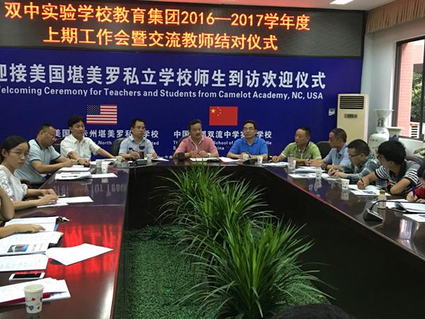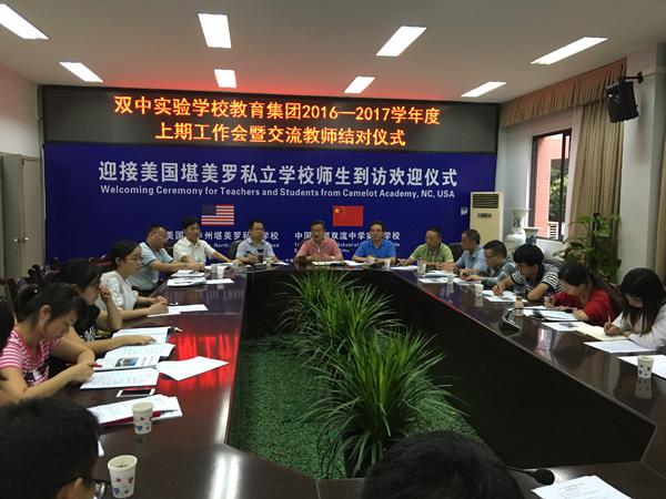 会议主要内容有:1、 新一批教师结对仪式。2、通报《双中实验教育集团2016—2017上期工作计划》。3、张润林副校长安排布置本期集团工作及2016年度成都市名校集团年度考核