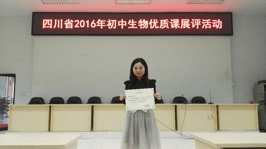 张淼玲老师在2016年省初中生物优质课展评活动中获省一等奖