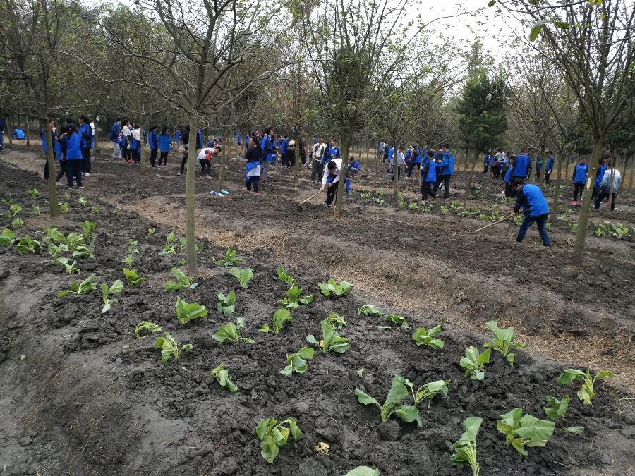 到达基地后,全体师生种植热情高涨,班主任和指导老师组织井然有序。根据蔬菜种植流程,即领工具—除草—锄地—领肥、撒肥—敲细土块并平地—打窝—领种苗种子—栽苗或播种—浇水—清理。在熟悉种植步骤后,老师们进行了耐心的种植示范。接着同学们按照出发前划分的六个小组,根据所负责的不同蔬菜品种以及种植区域开始了种植工作。种植过程中,同学们齐心协力,纵然汗流浃背,也不减一分热情。种植完成后,看着自己的劳动成果,大家都有一种说不出的激动和兴奋。全体师生于16:20种植完毕,返回学校。
