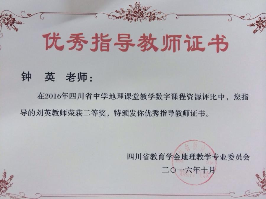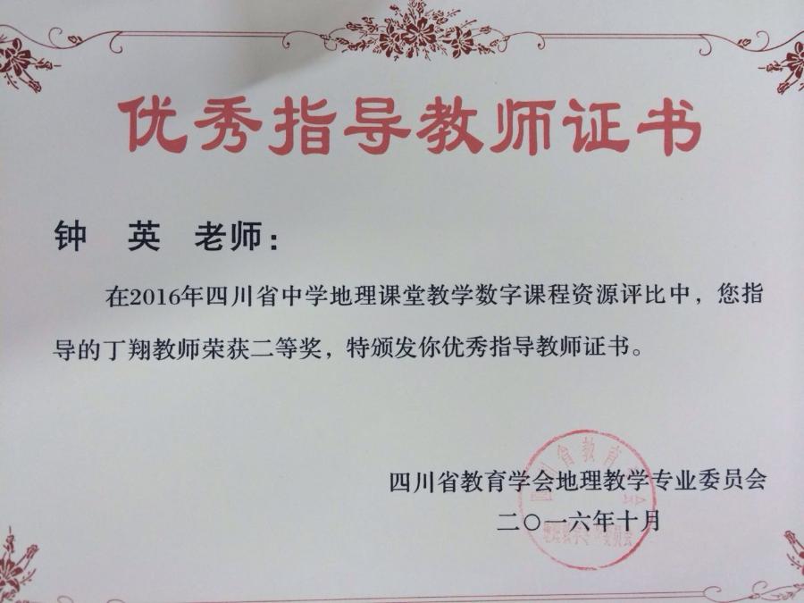 祝贺我校教师荣获四川省地理课堂教学数字课程资源比赛多项奖项