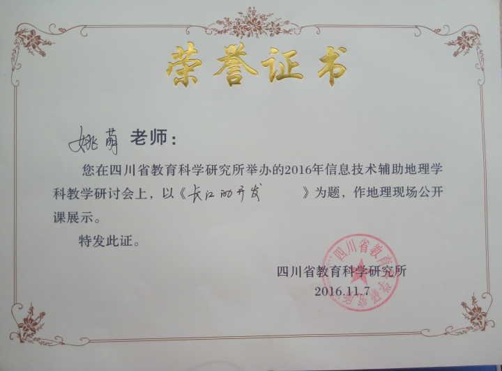 我校地理老师姚萌在2016四川省地理学科研讨会上献课