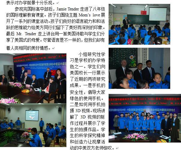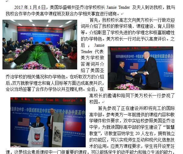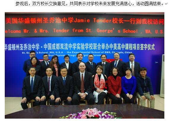 美国圣乔治学校校长Jamie Tender 一行到访双中实验校 签署联合办学协议
