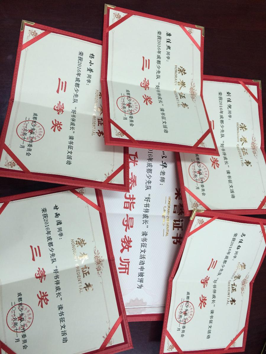 双中实验师生参加2016年成都市少先队读书征文活动喜获佳绩