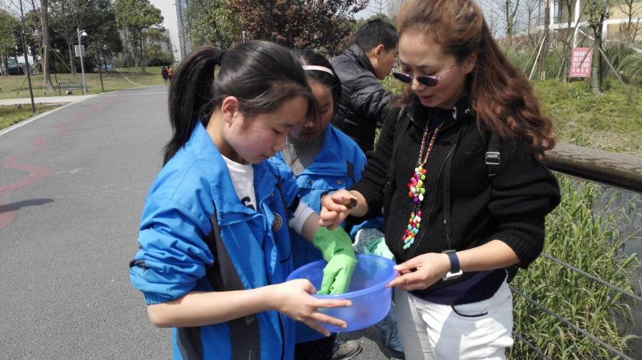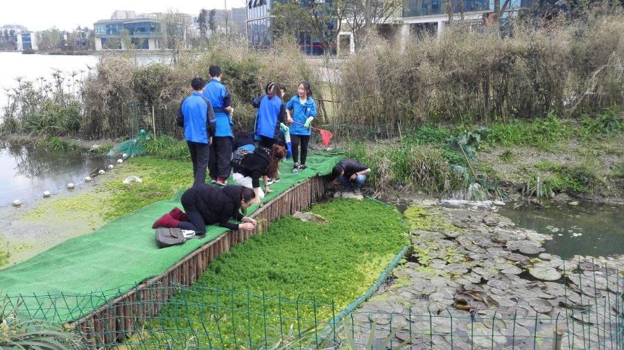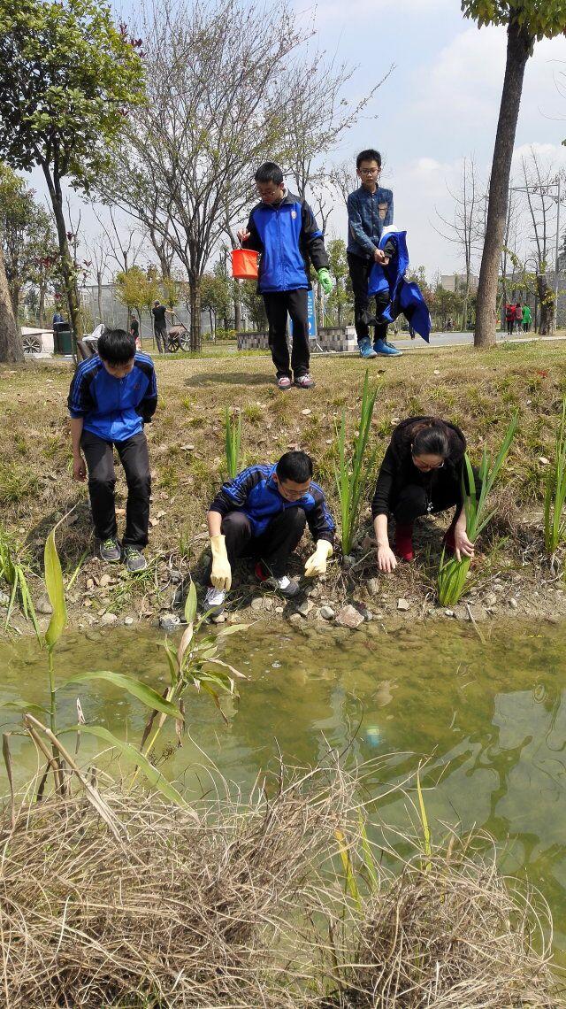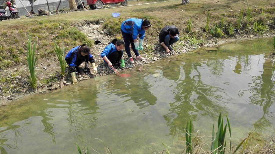 他们个个装备齐全,有渔网,小铲子,桶,手套。但是,他们是来干什么的呢?待他们在水边停下时,仔细一看,原来啊,他们是根据白河课题研究的需要到现场来观察螺的生活环境和抓福寿螺的!