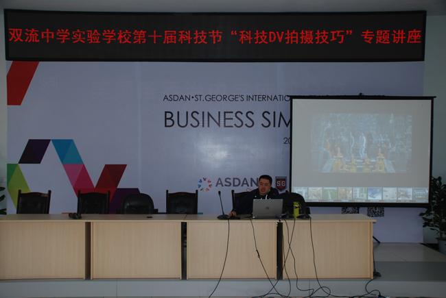 在专题讲座中,官老师选取了大量的图片和国内外优秀的专题片片段向同学们生动地解释了摄像的运动,摄像的镜头以及机位的基础知识。他通过我校去年参加成都市科技创新大赛科技DV的参赛影片形象生动地向同学们展示如何拍摄一部完整的科技DV影片,怎样进行创作。讲座现场不时响起的掌声告诉我们,官老师所做的专题讲座必将使我校科技DV影片拍摄质量更上一层楼,也将推动我校科技教育特色课程的进一步发展。