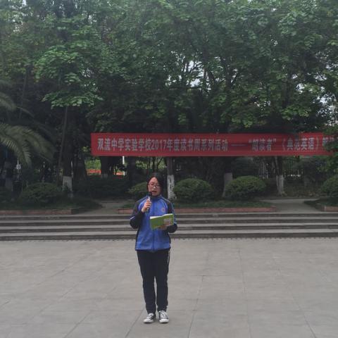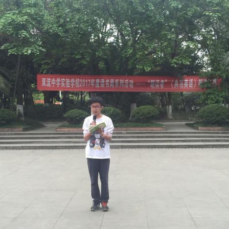 2017419日下午第三节课后,双流中学实验学校2017年度“读书周”系列活动之“朗读者”风采展示活动英语朗诵比赛在学校英语角小广场举行。这是本次读书周系列活动朗读者活动之一,参加这次朗读比赛的选手均来自七八年级。鉴于《典范英语》是目前我校学生的主要英语课外读物,本次比赛由同学们为大家展示自己对《典范英语7》各个故事的理解。参赛者们发音清晰、朗读流利、富有感情的朗读给大家留下了深刻的印象。这说明了同学们在平时课余时间里朗读练习认真,语感得到了增加。本次活动让同学生展示了自己的风采以及朗读收获。也将会进一步调动同学们学习英语的积极性,夯实学生课外阅读、朗读习惯,培养学生的口头表达能力,增强同学们的自信心。(王小玲)