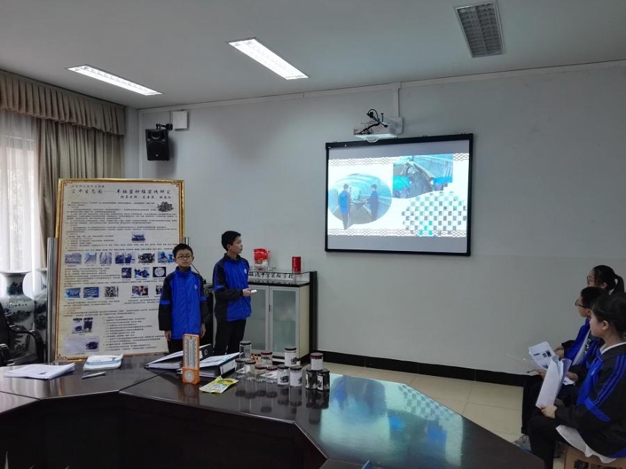 七年级十四班的帅香涵同学作为本次汇报的主持人首先介绍了课题的研究背景、研究目的和意义、研究方法、研究的指导机构、老师和学生、研究时间及计划,展示了扎实的过程记录和同学们的研究过程。